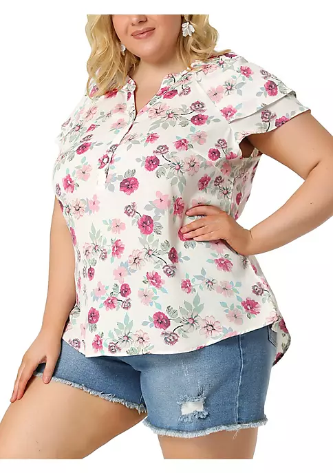 Agnes Orinda Women’s Plus Size Strappy Cold Shoulder Trumpet Sleeves Top