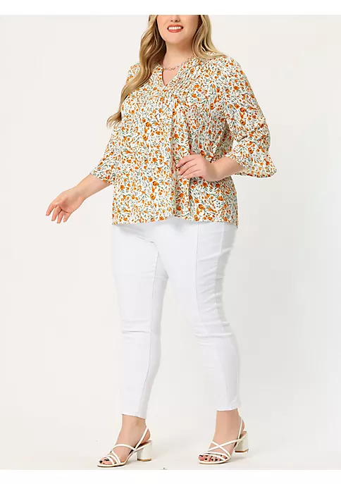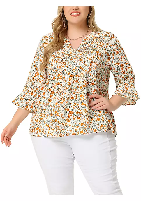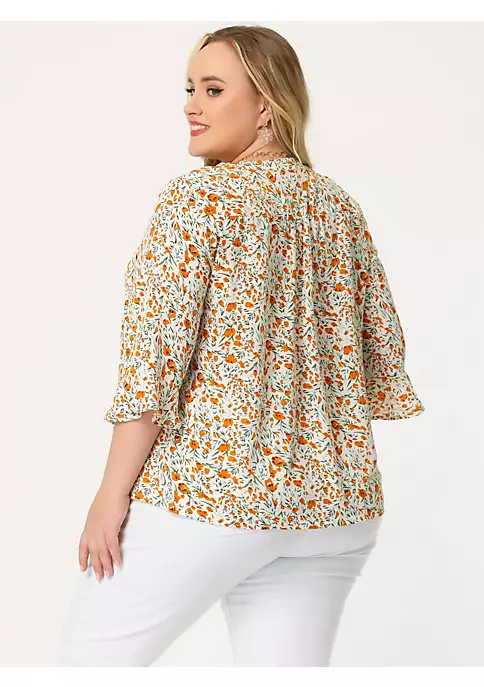Agnes Orinda Women’s Plus Size Tops, V-Neck Boho Chiffon Ruffle Blouses
