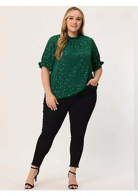 Agnes Orinda Women’s Plus Size Strappy Cold Shoulder Trumpet Sleeves Top