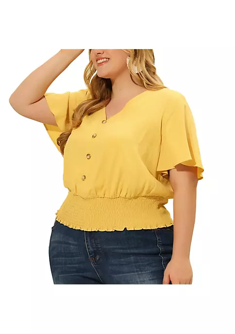 Agnes Orinda Women’s Plus Size Tops, V-Neck Boho Chiffon Ruffle Blouses