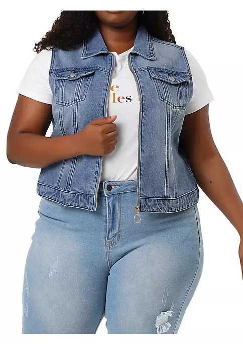 Agnes Orinda Plus Size Denim Vests for Women Sleeveless Lapel Casual Chambray Jackets Vest
