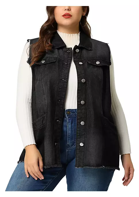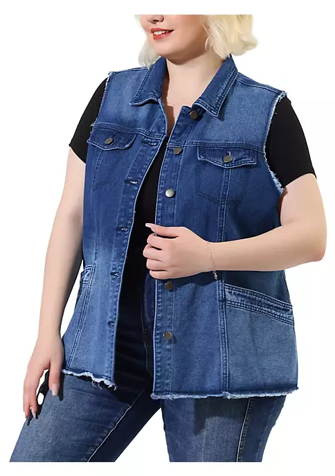 Agnes Orinda Plus Size Denim Vests for Woman’s Sleeveless Jean Zip Cargo Jackets Vest Valentines