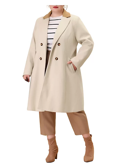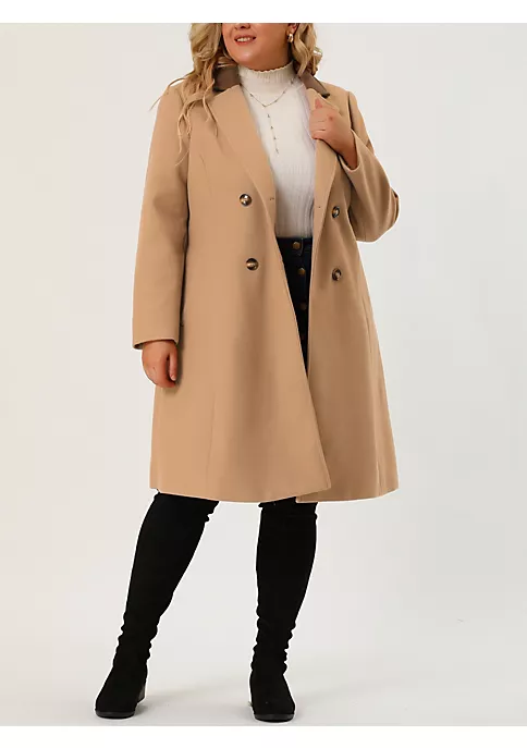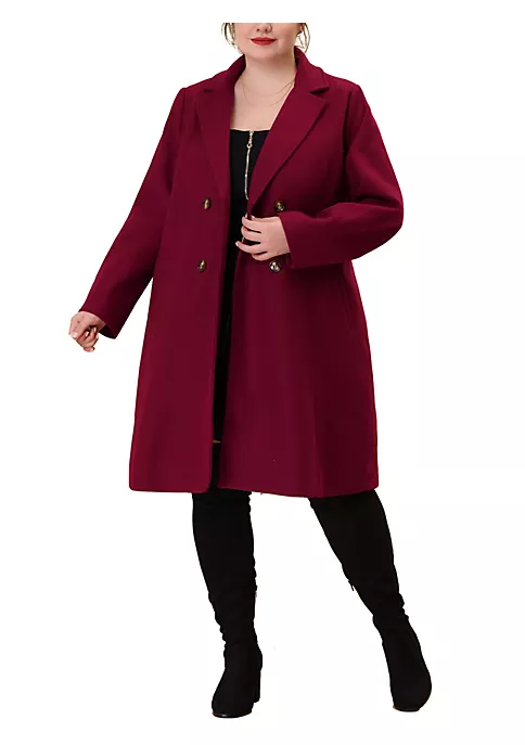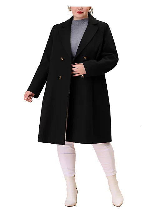 Agnes Orinda Women’s Plus Size Notched Lapel Double Breasted Long Coat