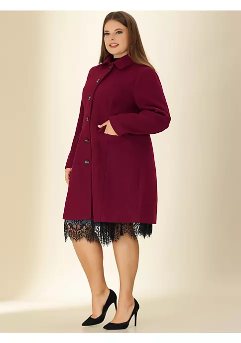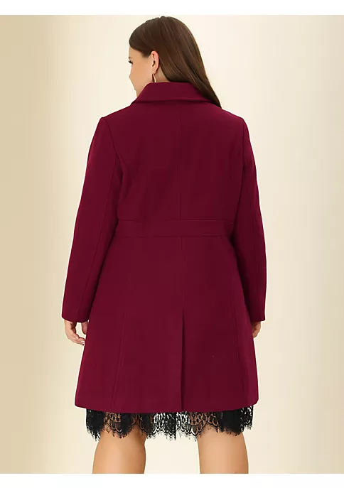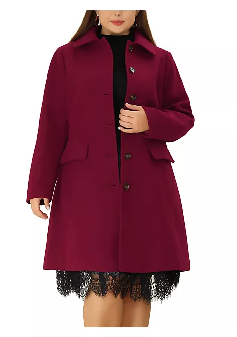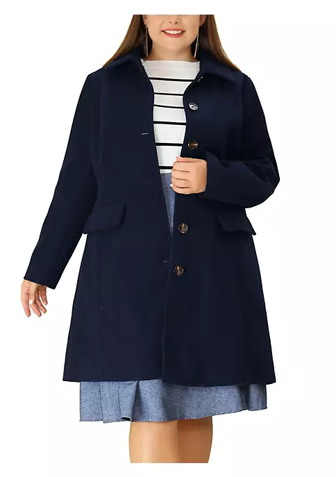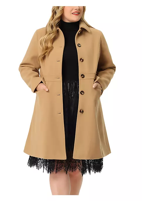 Agnes Orinda Women’s Plus Size Winter Coats Elegant Notched Lapel Single Breasted Trench Coat