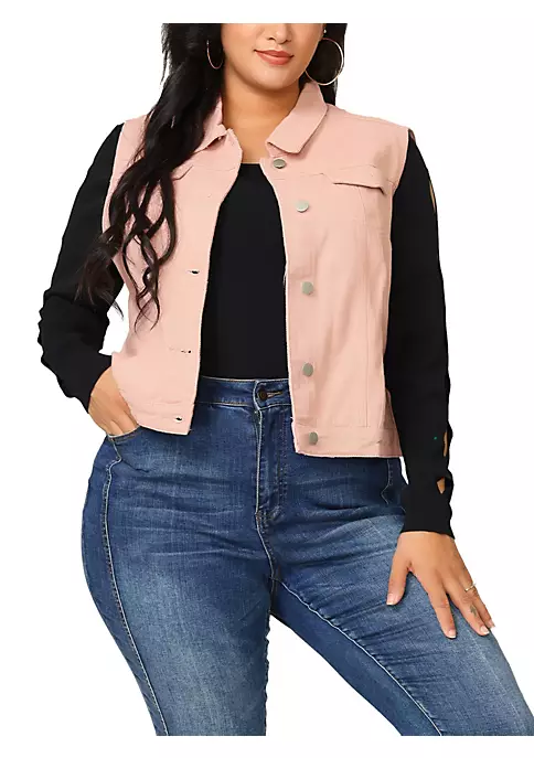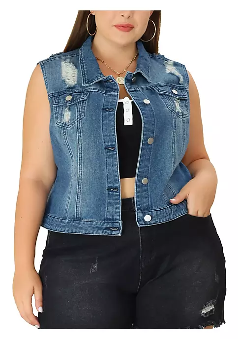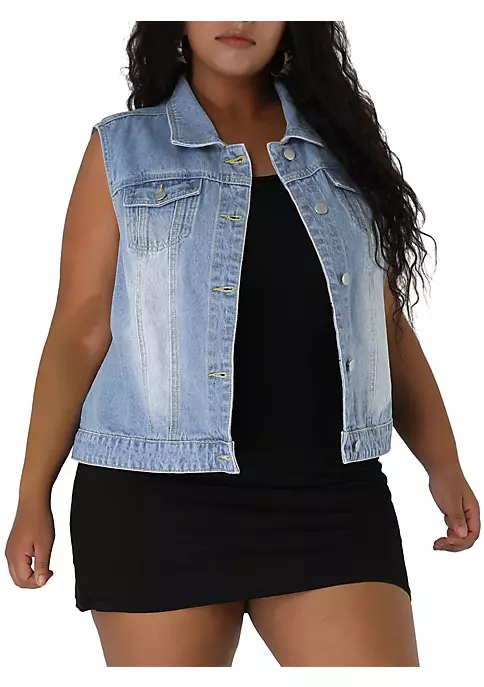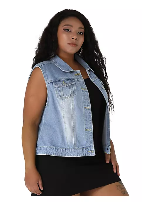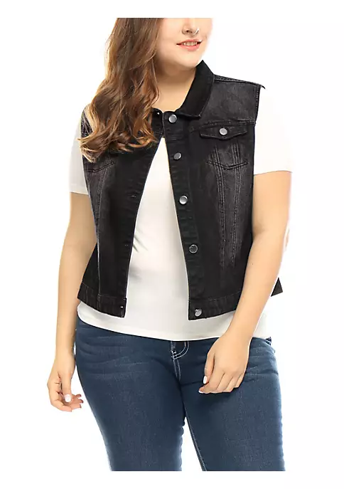 Elevate your cool style with this denim vest. A basic collar, buttoned front, and two buttoned chest pockets of this women’s plus-size jean vest are all the classic details that you will love flaunting all over town. A basic collar, buttoned front, and two buttoned chest pockets are all the classic details you will love flaunting all over town.