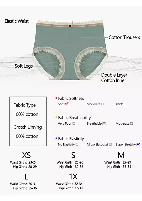 The beautiful lace trim panties provide a good wearing experience and high performing breathable fabric to keep you cool. The full coverage and high rise waist briefs with lace trim design, it made in soft texture and comfy cotton fabric. It’s full coverage and better strechy, fiting the hip curve, giving you all-round better wearing comfortable experience. You can wear these as your all day, everday panties because they’re more comfortable and lightweight.