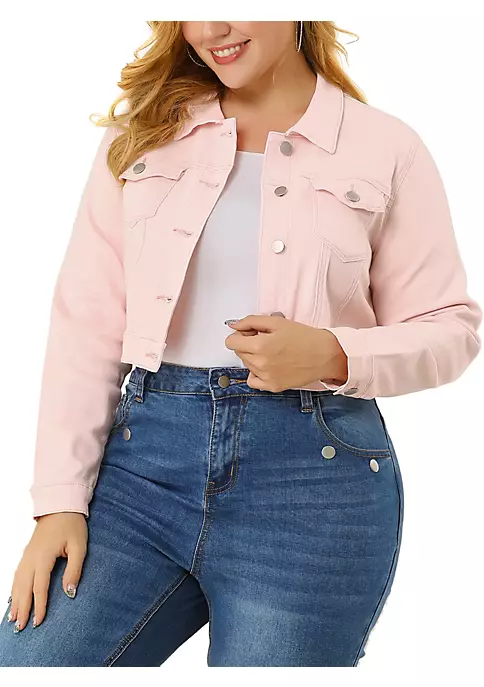 Agnes Orinda Plus Size Denim Jackets for Women Classic Washed Front Relaxed Fit Jean Jacket