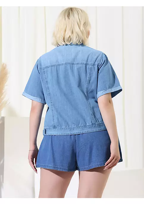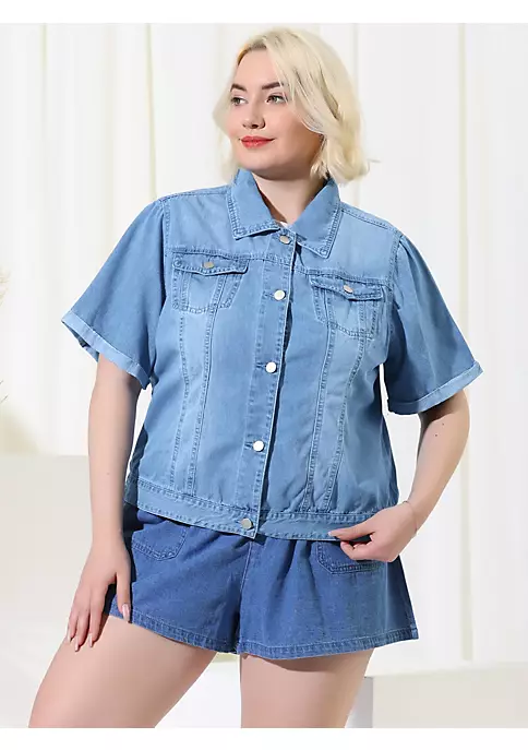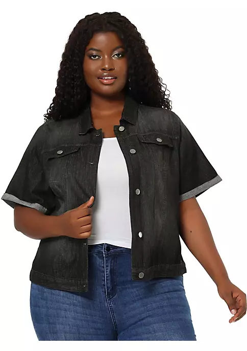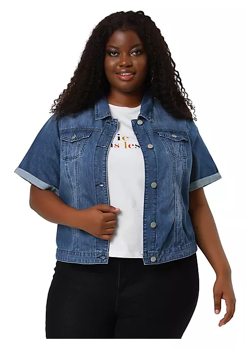 Agnes Orinda Plus Size Denim Jackets for Women Classic Washed Front Relaxed Fit Jean Jacket