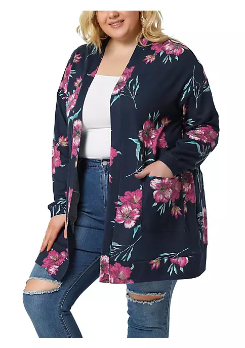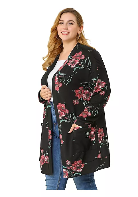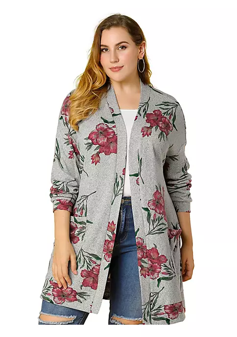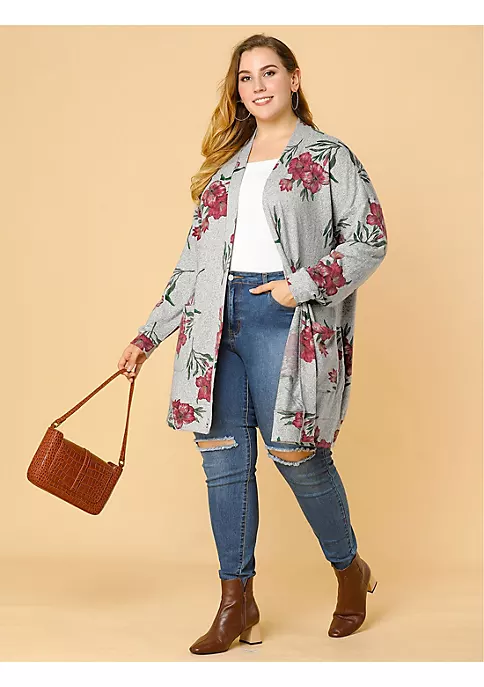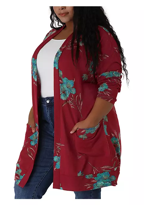 Agnes Orinda Plus Size Cardigans for Women, Open Front Striped Long Sleeve Christmas Cardigan