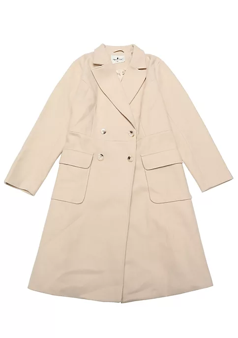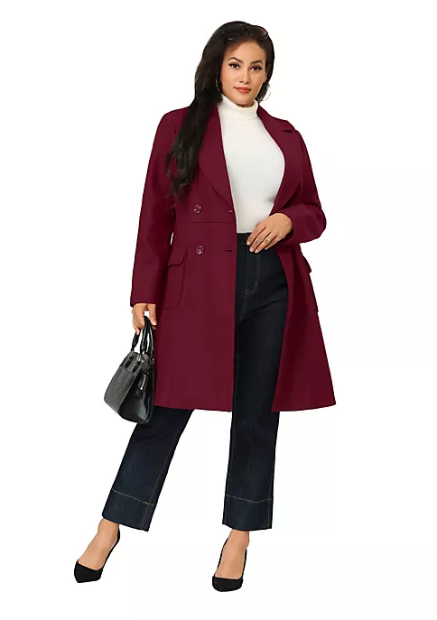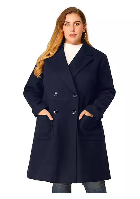 Uplift your seasonal wardrobe with this charming double-breasted coat. This piece is cut in a double-breasted design with four statement buttons on the front. Finished with pockets and long sleeves. Throw over jeans for an off-duty look, or with tailored trousers for a polished ensemble. Model Body Size: Height: 5’7″, Chest: 42 inches, Waist: 32 1/4 inches, Hip: 44 7/8 inches, Weight: 180 lbs, model is wearing a 1X.