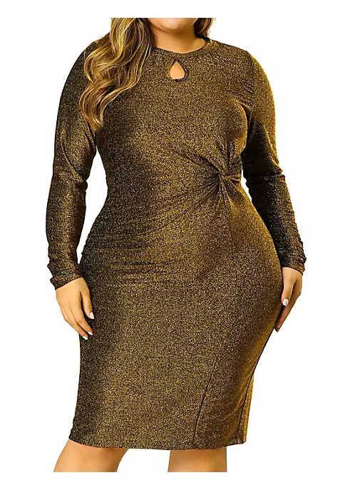 This glitter midi body-con dress is sure to show off your perfect shape. Featuring a stretched softy material, a keyhole neckline with long sleeves detail dress. Just add some high heels to finish off the flattering look.