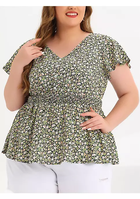 Agnes Orinda Women’s Plus Size Blazers Ruffle V Neck Button Ruched Casual Peplum Blazer