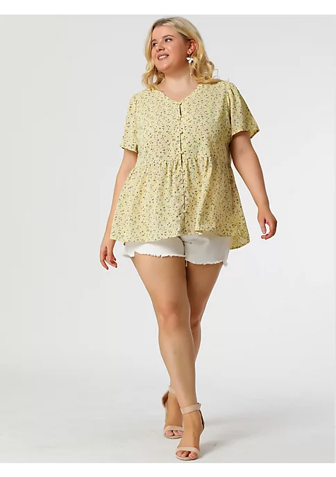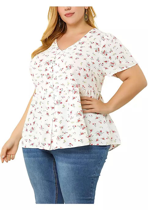 Agnes Orinda Women’s Plus Size Blouses Pin Dots Round Neck Cute Basic Top