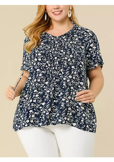 Agnes Orinda Women’s Plus Size Blouses Pin Dots Round Neck Cute Basic Top