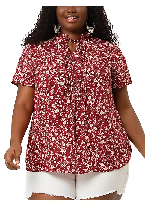 Agnes Orinda Women’s Plus Size Tops, V-Neck Boho Chiffon Ruffle Blouses