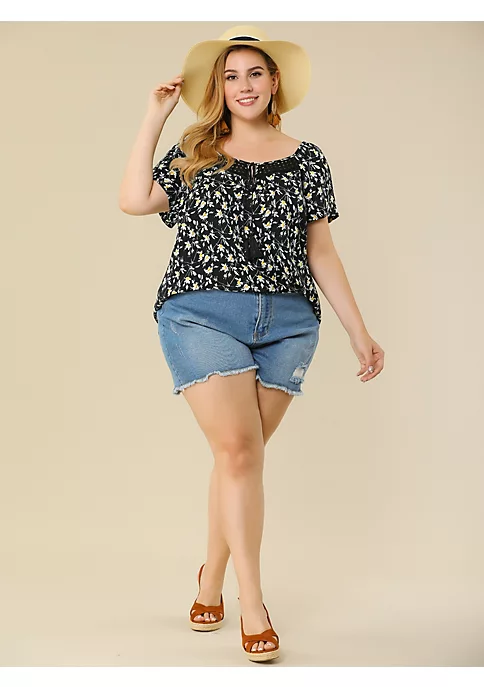 Agnes Orinda Plus Size Jeans Shirt for Women Short Sleeve Chest Pocket Button Down Denim Shirts