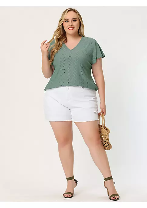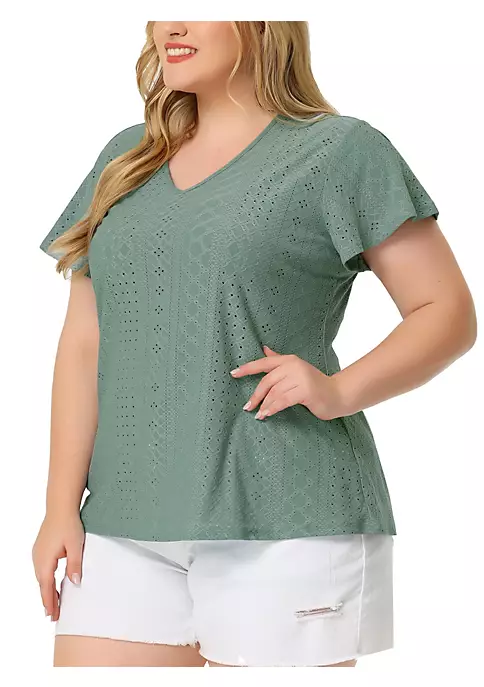 Agnes Orinda Women’s Plus Size Strappy Cold Shoulder Trumpet Sleeves Top
