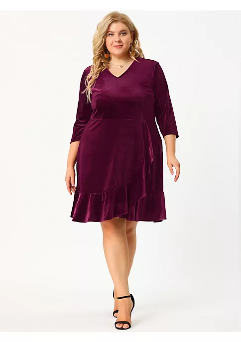 Agnes Orinda Women’s Plus Size 3/4 Sleeve Belted Above Knee Flared Chambray Denim Shirt Dress