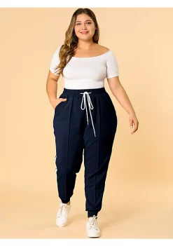 Agnes Orinda Women’s Plus Size Sweatpants Elastic Contrast Color Lounge Jogger Pants Valentines