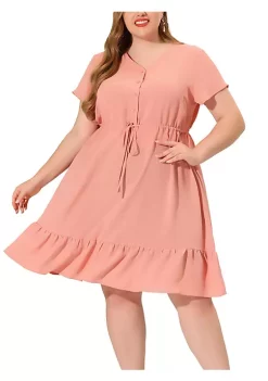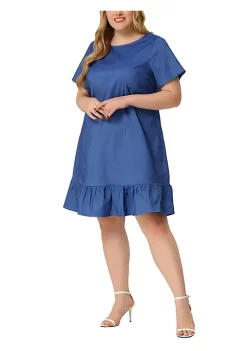 Agnes Orinda Women’s Plus Size 3/4 Sleeve Belted Above Knee Flared Chambray Denim Shirt Dress