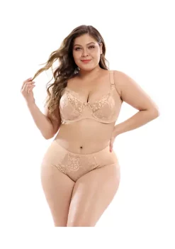 Agnes Orinda Women’s Plus Size Underwire Lace Push-Up Adjustable Straps Bra and Panty Set