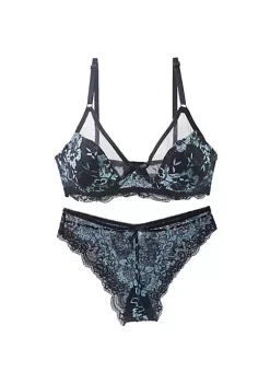 Agnes Orinda Women’s Underwire Floral Lace Mesh Push-Up 2-Hooks Lace Trim Bra and Panty Set