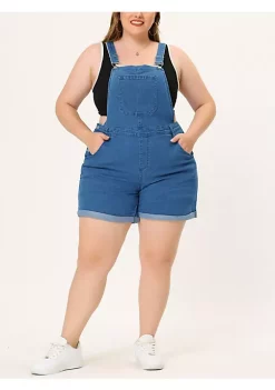 Agnes Orinda Plus Size Overall Shorts for Women Jumpsuit Roll Hem Pocket Jean Denim Overalls