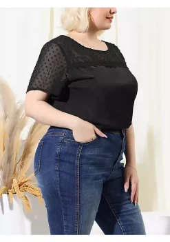 Agnes Orinda Women’s Plus Size Polka Dots Sheer Panel Short Sleeve Plain Top