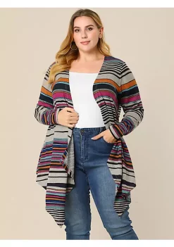 Agnes Orinda Women’s Plus Size Cardigan, Casual Striped Pattern Irregular Hem Sleeveless Cardigans