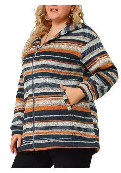 Agnes Orinda Plus Size Jacket for Women Pullover Zip Up Stripe Printed Long Sleeve Knit Boho Hoodie