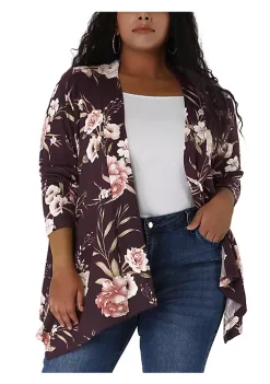 Agnes Orinda Women’s Plus Size 3/4 Sleeve Sheer Lace Open Front High Low Hem Cardigan