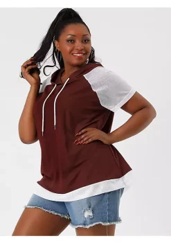 Agnes Orinda Women’s Plus Size Hoodie Raglan Short Sleeves Sport Drawstring Hoodies Tops