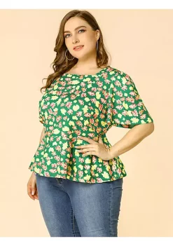 Agnes Orinda Women’s Plus Size Blouse, Floral Printed Square Neck Ruffle Sleeves Peplum Blouses