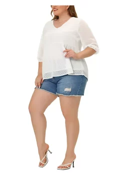 Agnes Orinda Plus Size Blouses for Women Flare Sleeve V Neck Swiss Dots Tops