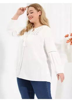 Agnes Orinda Women’s Plus Size Hollow Out Elastic Waist Peplum Elegant 3/4 Sleeve Blouses