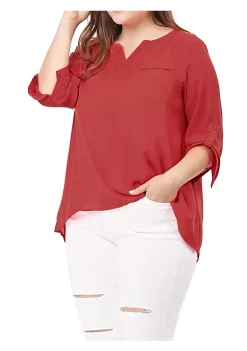 Agnes Orinda Women’s Plus Size Tops Split Neck High Low Hem 3/4 Sleeves Chiffon Blouse Mothers Day