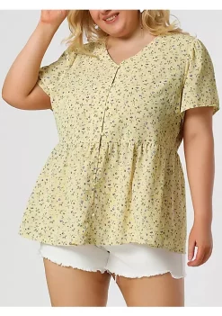 Agnes Orinda Women’s Plus Size Ruffle Blouse V Neck Smocked Sleeves Tops Mothers Day Gifts